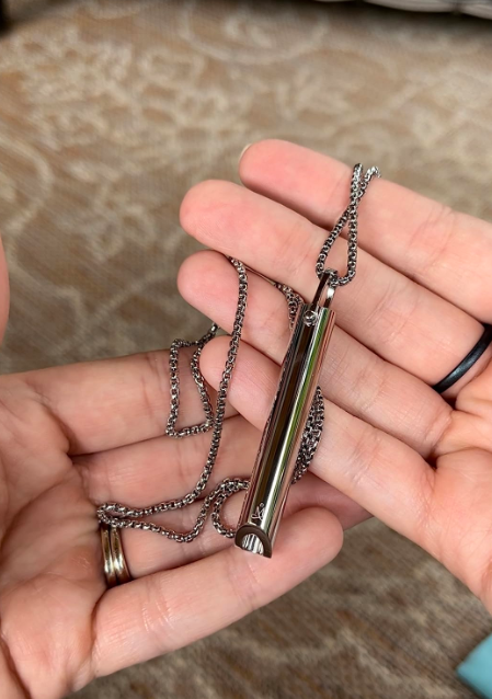 Dolazi s praktičnim lančićem, pa je možete nositi kao ogrlicu ili staviti u džep — olakšanje vam je nadohvat ruke u samo nekoliko sekundi.